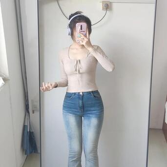 轻盈浅蓝,如同夏日海风,带来一丝凉爽与惬意。露脐设计搭配飘逸的丝带,性感又不失柔美,完美展现你的小蛮腰。高腰九分牛仔铅笔裤,紧致包裹腿部线条,拉长腿部比例,显瘦效果满分!